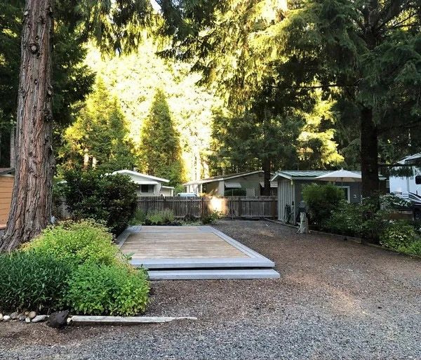 This large 63’x33’ RV lot is in the foothills of the Cascade Mountains in beautiful McKenzie Bridge, Oregon. The beautifully landscaped lot comes with a customed designed metal roofed shed complete with hardwood interior including cabinets, a large Trex deck, a redwood picnic table with umbrella, and two adirondak chairs. The lovely landscaping is perfected with low voltage lighting and a drip irrigation system.